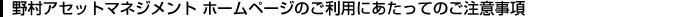 当ホームページに掲載されている事項は、野村アセットマネジメント株式会社のご案内等のほか、投資信託および投資一般に関する情報の提供を目的として当社が作成したものであり、投資信託の勧誘を目的としたものではありません。