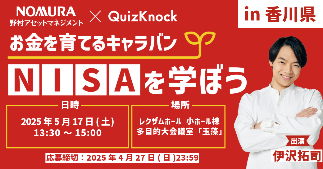 当社とQuizKnockが協働して実施する「お金を育てるキャラバン NISAを学ぼう」を香川県で開催します。