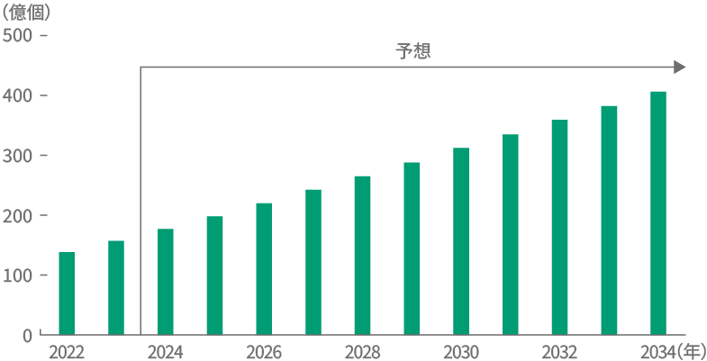パソコンやスマートフォン以外に、家電や車などもインターネットとの接続が可能となってきています。IoT(Internet of Things モノのインターネット化)接続デバイス数は今後も増加する見込みです。IoT接続デバイスにも半導体が使われているため、IoT接続デバイス数の増加が半導体需要の拡大を後押しすると考えられます。